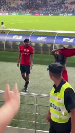 事发当时,海港外援茹萨脱下球衣,想要把球衣赠送给看台上要他球衣的一名球迷。但就在球衣即将到手时,一名申花球迷突然对其进行了推搡。